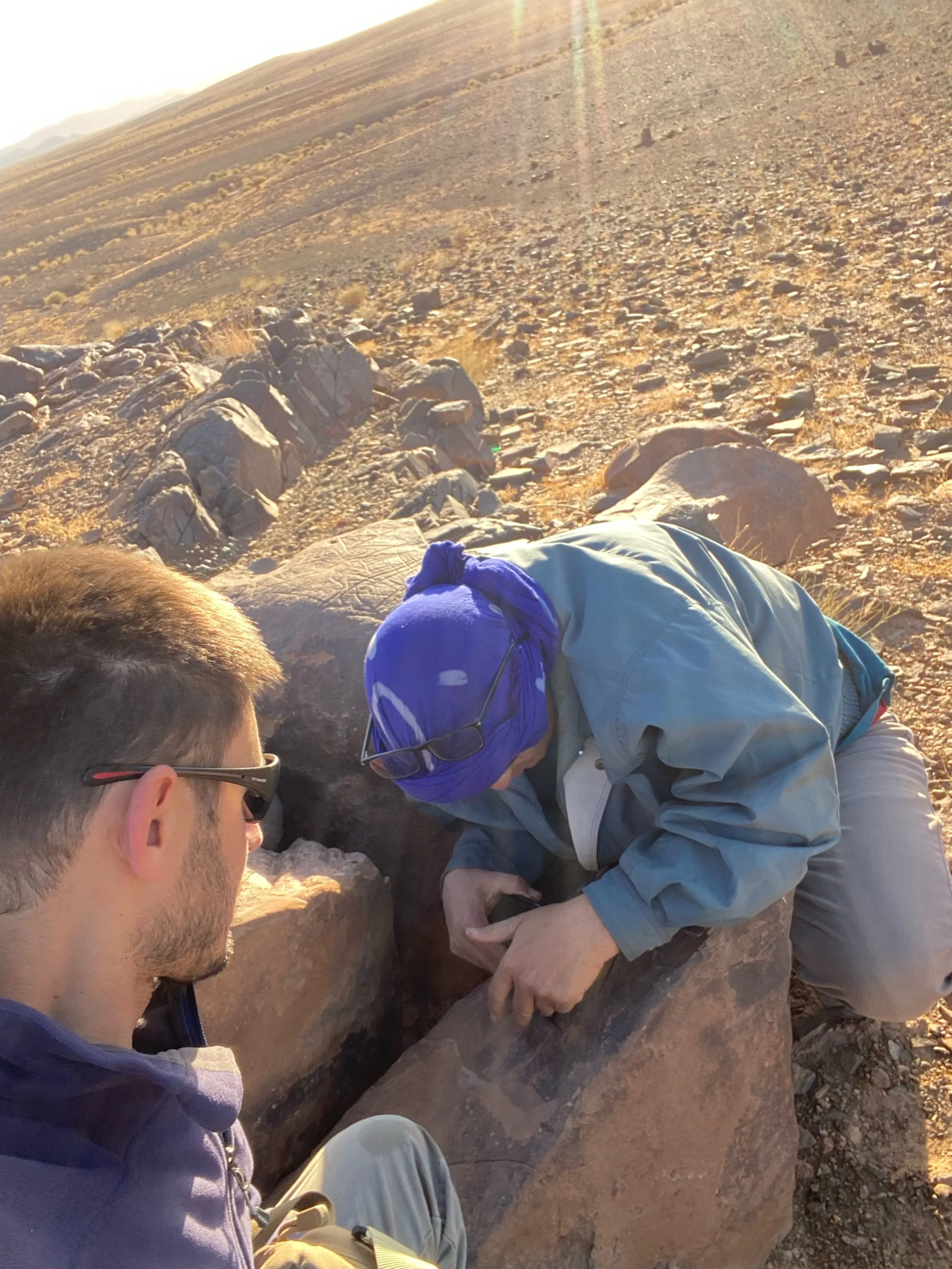 The shadows lengthen as the day rapidly fades on this late December afternoon, there is not much time left. It must have been half an hour now since we left the road to venture onto this dusty track, which no one seems to have used for a long time. I drive a little too fast while trying to avoid the large protruding rocks, which the dust from the windshield, made visible by the low light, prevents me from clearly distinguishing. Next to me, Youssef is strangely silent, he who earlier was relentless when it came to learnedly explaining to me the sedimentation process at the origin of the Ordovician layer in which we were digging for our trilobites’ fossils. He too must have felt that by turning on this path earlier, it was the well-marked world of academic knowledge to which he was accustomed that we had left, and that what awaited us at the end, probably would be of a completely different order.