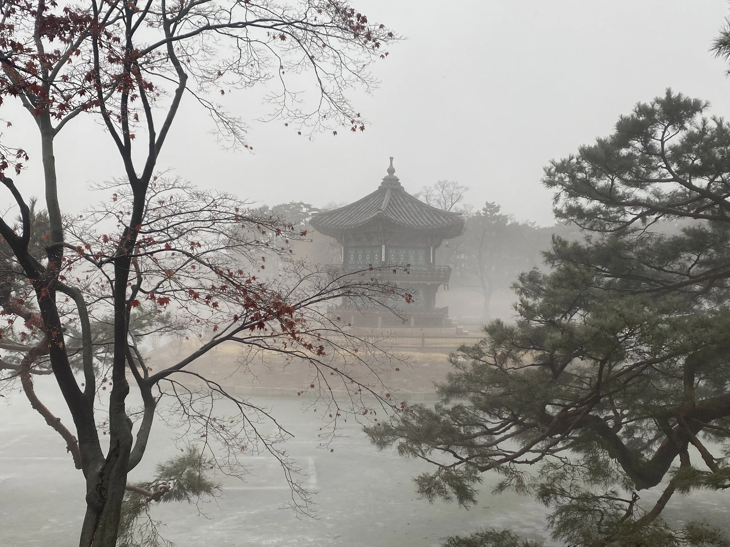 Mais au fond, qu’est-ce qui ne l’est pas dans la brume ? Cette brume qui tout à l’heure avait transformé le jardin de l’ancien palais royal en une aquarelle chinoise du 17eme siècle. L’avais-tu remarqué Frédéric ? Avais-tu remarqué qu’à la faveur d’une trouée, la brume avait laissé apparaître un groupe de courtisanes se promenant dans leur robes amples et colorées, tandis que de jeunes scribes coiffés de leurs hauts chapeaux coniques les espionnaient de derrière les piliers de la pagode ? Alors que tu débattais avec passion de la supériorité de la caméra du Samsung S20 sur celui de l’iPhone 10, tandis que nous arpentions les travées arborées du jardin, as-tu seulement remarqué comme la brume nous isolait de la ville autour, effaçant pour un moment la frontière du temps ? Qui aurait alors pu dire en cet instant dans quelle époque nous nous trouvions ? Je sais Frédéric, je sais que de pouvoir vérifier sur ton téléphone portable le niveau d’humidité dans le garage de ta maison en France, alors que l’on est en Corée est un sujet qui mérite toute mon attention, mais vois-tu Frédéric , ce qui m’intéresse moi, c’est de savoir combien de temps encore, ce lieu hors du temps, cet écrin préservé, dans lequel je voudrais me cacher lorsque toute cette pagaille finira par imploser, pour combien de temps encore pourra-t-il résister avant d’être à son tour avalé par la ville, ce blob rampant, qui s’étend comme une tache de pétrole à la surface du monde…
