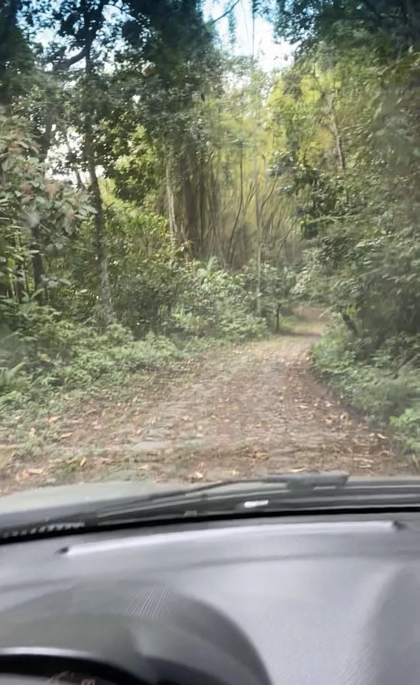 Du moins, c’est avec ces pensées en tête que je quittais la route goudronnée pour m’engager sur une piste grimpant dans la forêt avec ma Fiat « Uno Way » (dont j’espérais tout de même qu’elle ferait aussi le retour…) hors d’âge, dénichée quelques jours plus tôt auprès d’un loueur peu regardant d’Itacaré. Agréablement surpris par la qualité de la piste dans un premier temps, une piste pavée, grand luxe dans la jungle, moi qui m’attendais à de la boue et de profondes ornières en cette saison des pluies. Je dû cependant déchanter au fur et à mesure que je montais. En effet les feuilles et la pluie rendant les pavés extrêmement glissants, et mes pneus étant, comme j’avais pu m’en rendre compte quelques heures plus tôt sur un dos d’âne non signalé, extrêmement lisses, ma Fiat se mit à patiner dans les pentes toujours plus raides. Péniblement je parvins tout de même jusqu’à la limite des nuages, où la route après un dernier pâturages traçait un virage en épingle à cheveux très serré avant de disparaître dans la forêt. S’en était trop pour ma Fiat qui d’un dernier patinage plaintif, me fit savoir qu’elle ne monterait pas plus haut, que je n’avais qu’à prendre mon sac à dos et continuer à pied pendant qu’elle m’attendrait tranquillement ici sur le bord de la piste. Ce que je fis donc.