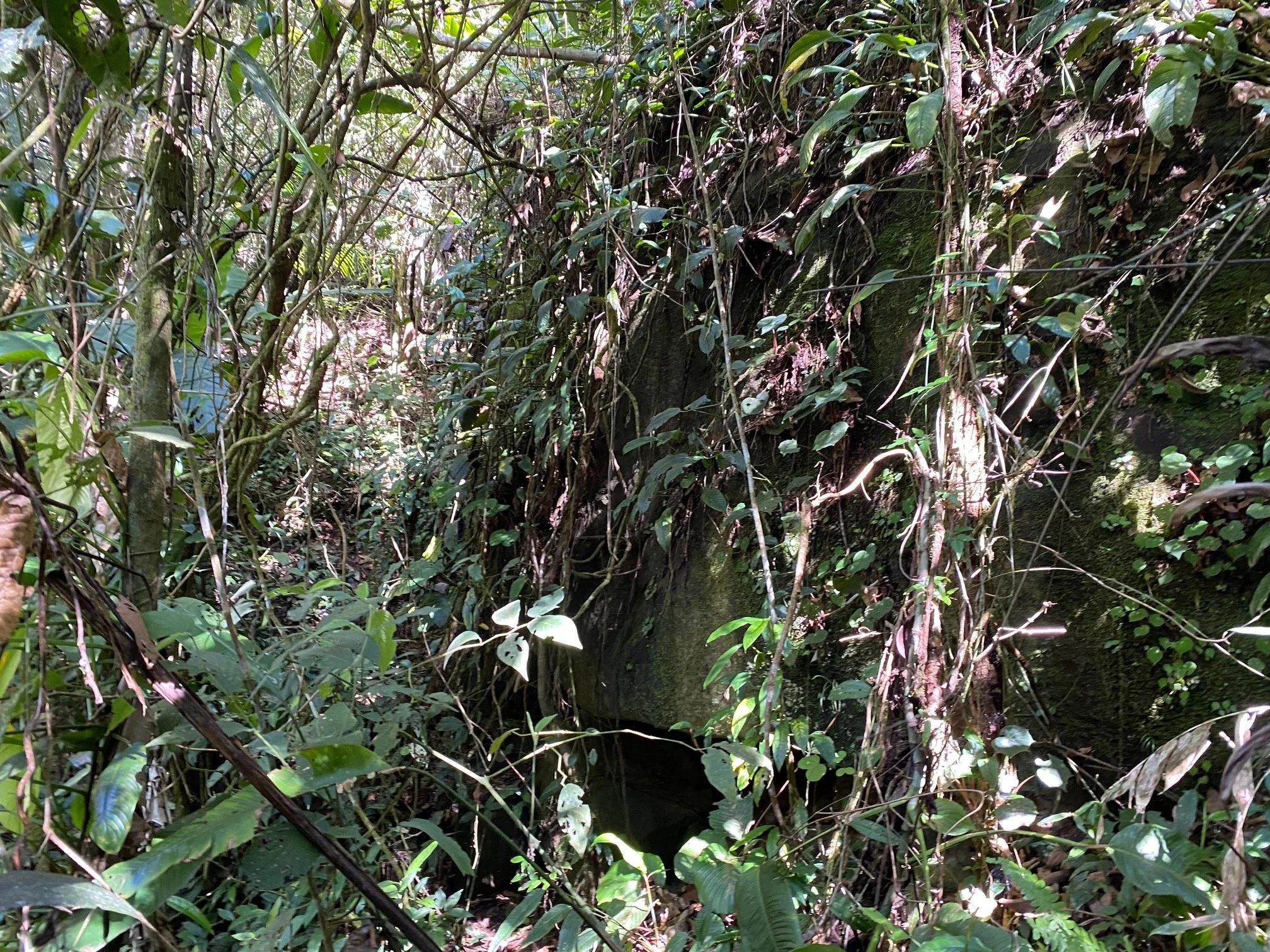 L’air était frais mais la montée ardue dans une atmosphère saturée d’humidité eut vit fait de me mettre en nage. Et le couvert de l’épaisse canopée n’était pas de trop pour rendre l’ascension supportable. De part et d’autre de la piste, la forêt dense et impénétrable semblait comme les deux bords d’une plaie qui n’attendaient que mon passage pour pouvoir se ressouder à nouveau. Étrangement, il régnait un silence auquel je ne me serais pas attendu dans ce lieu pourtant exubérant de vie et seul un froissement de feuilles venait parfois répondre au bruit de mes pas sur les pavés, sans que je ne puisse jamais pour autant apercevoir ni identifier l’animal à son origine. Je m’arrêtais de temps à autre pour tendre l’oreille et scruter la forêt aussi loin que je le pouvais, c’est à dire quelques mètres au-delà de la piste tout au plus. Mais pour ne voir que l’habituel entrelac immobile de feuilles de toutes formes et nuances de vert, à travers lesquelles, à n’en pas douter, chaque créature de la forêt devait m’observer tapis en attendant mon départ pour reprendre leur affaires secrètes.